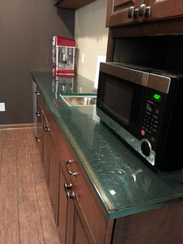 1” Standard Clear, Fizzee Texture Island, 3/8” Standard Clear Textured cabinet doors